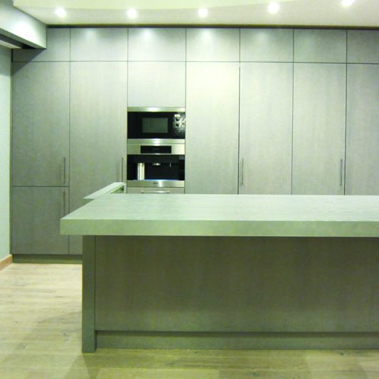Влагостойкая, на поверхность можно установить встроенную мойку.